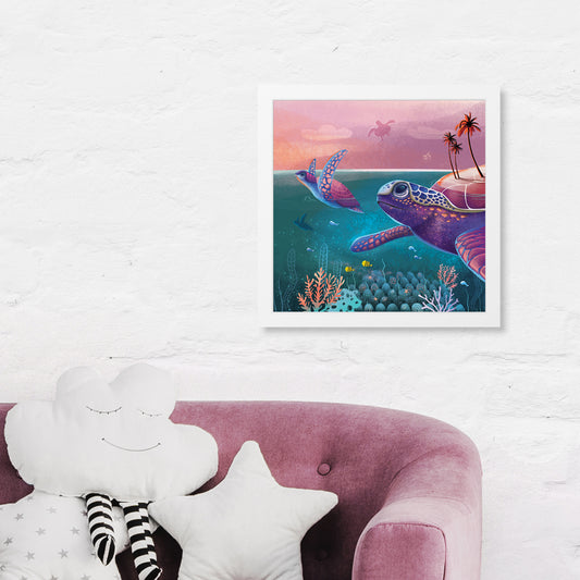 산호 바다 거북 미니 아트 프린트 액자